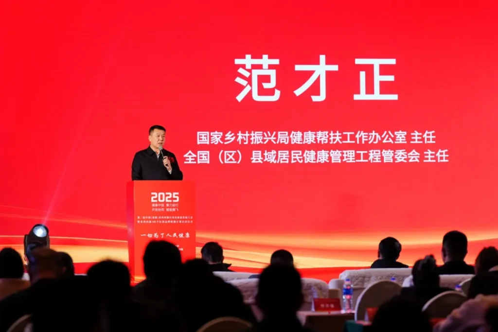 在精彩的开幕式之后,国家乡村振兴局健康帮扶工作办公室主任、全国(区)县域居民健康管理工程管委会主任范才正上台致辞。他表示:食药同源产业是连接乡村振兴与全民健康的重要纽带。