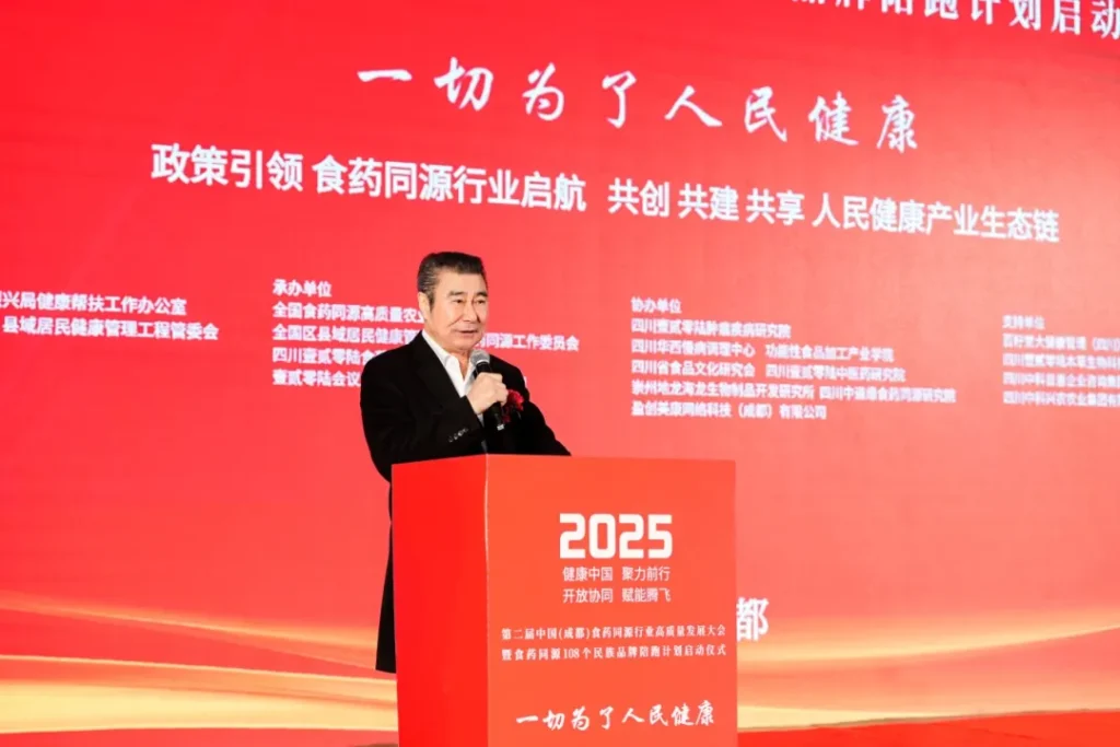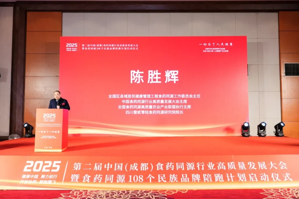 2025 年 12 月 6 日,第二届中国(成都)食药同源行业高质量发展大会暨食药同源 108 个民族品牌陪跑计划启动仪式在四川成都隆重召开。作为全国(区)县域居民健康管理工程福建办事处主任、益力康集团董事长宋茂清受邀参会。